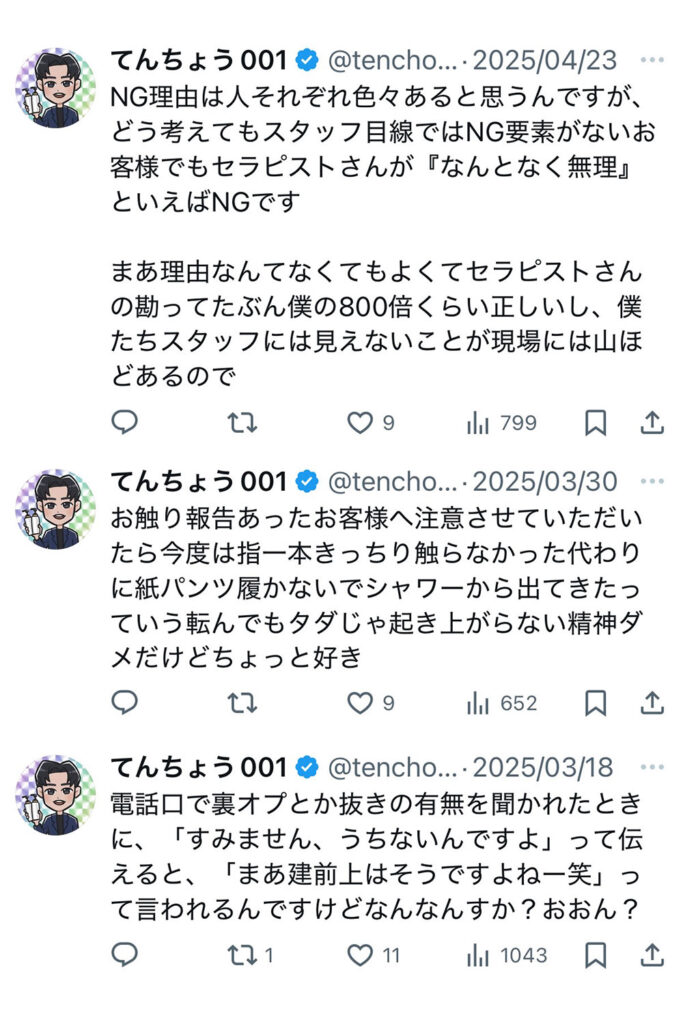 ただ、もし万が一何かあってからでは遅いんです。僕たちスタッフだけならまだしも、お店が原因でセラピストさんにまで迷惑が及んだとき、僕たちは責任を取ることができません。