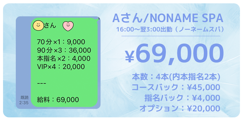 💎NONAME SPAのお給料例