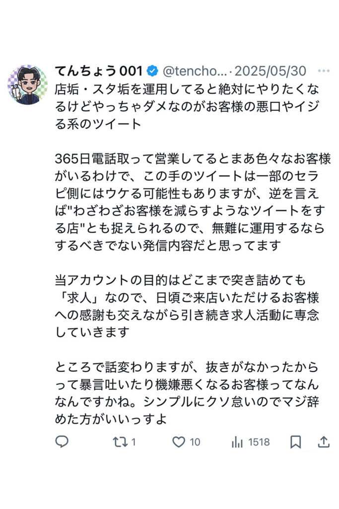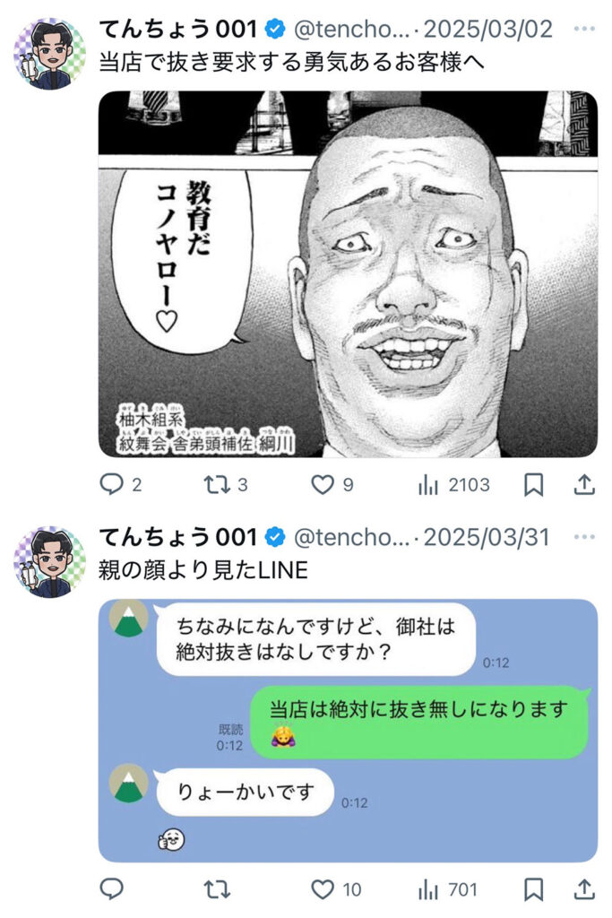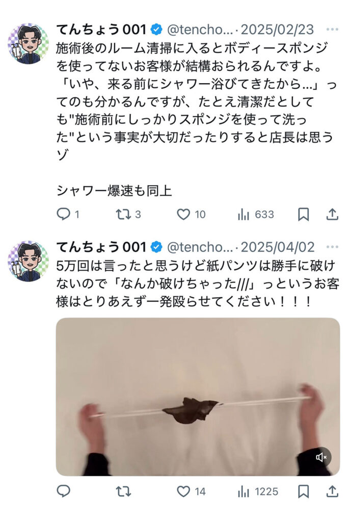 特にXはお客様も多数見ていることから、店舗公式アカウントとは別に店長アカウントを作成し、ユーモアを交えながら定期的にお客様への注意喚起に努めています👇
